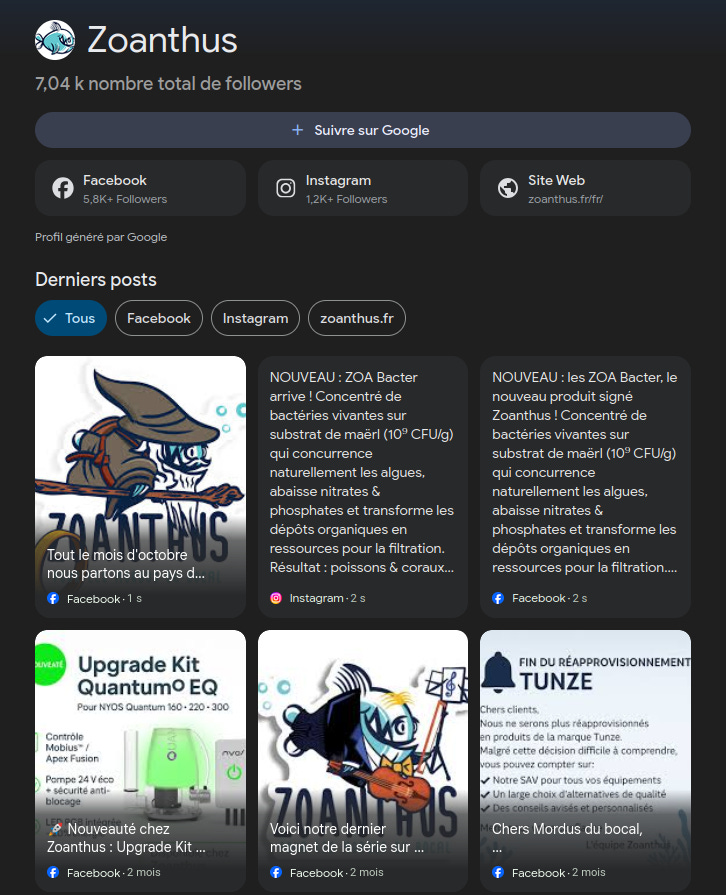 Google a déployé les pages Profile : nom du média, bouton “Suivre sur Google”, propriétés RS associées.