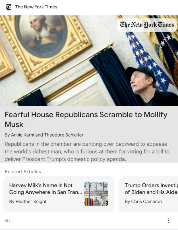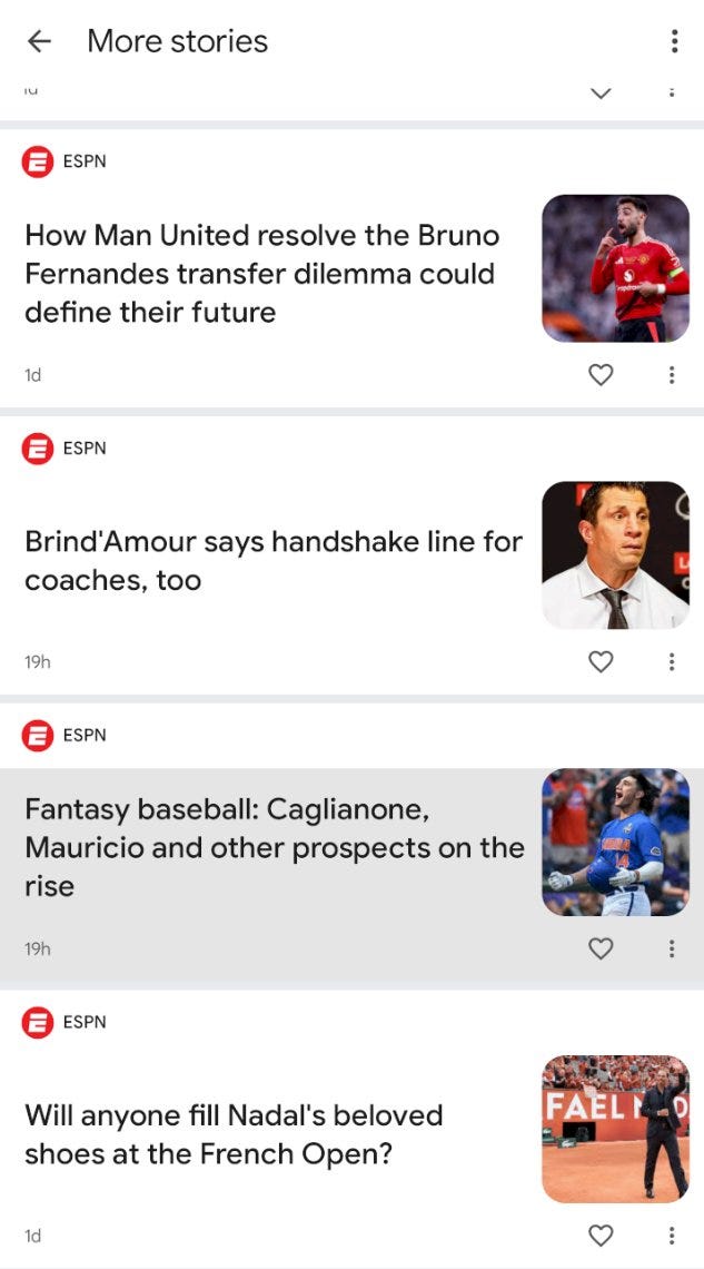 "Souvent", le premier article dans le flux est un article suggéré par rapport à une entité que vous avez récemment suivi. Pour savoir si un article vous a été proposé pour cette raison, déroulez "plus d'options":